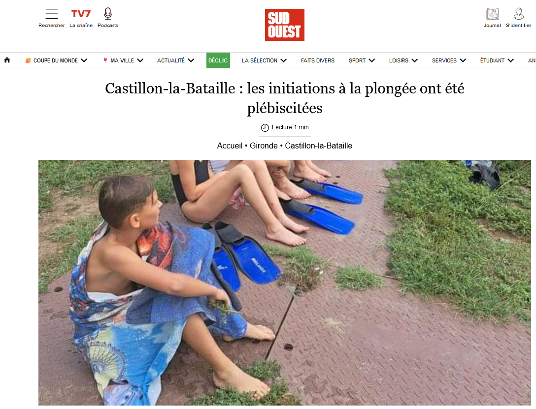 Baptêmes de plongée archéo subaquatique dans le cadre des Journées européennes du Patrimoine 2023 à Castillon-la-Bataille